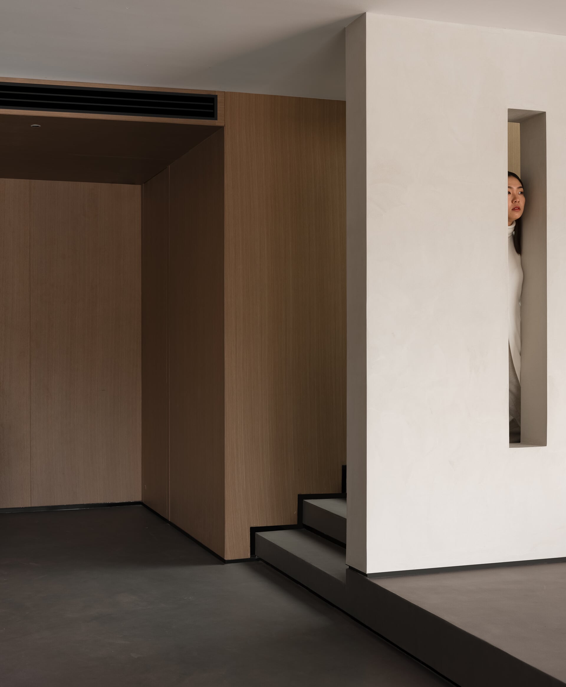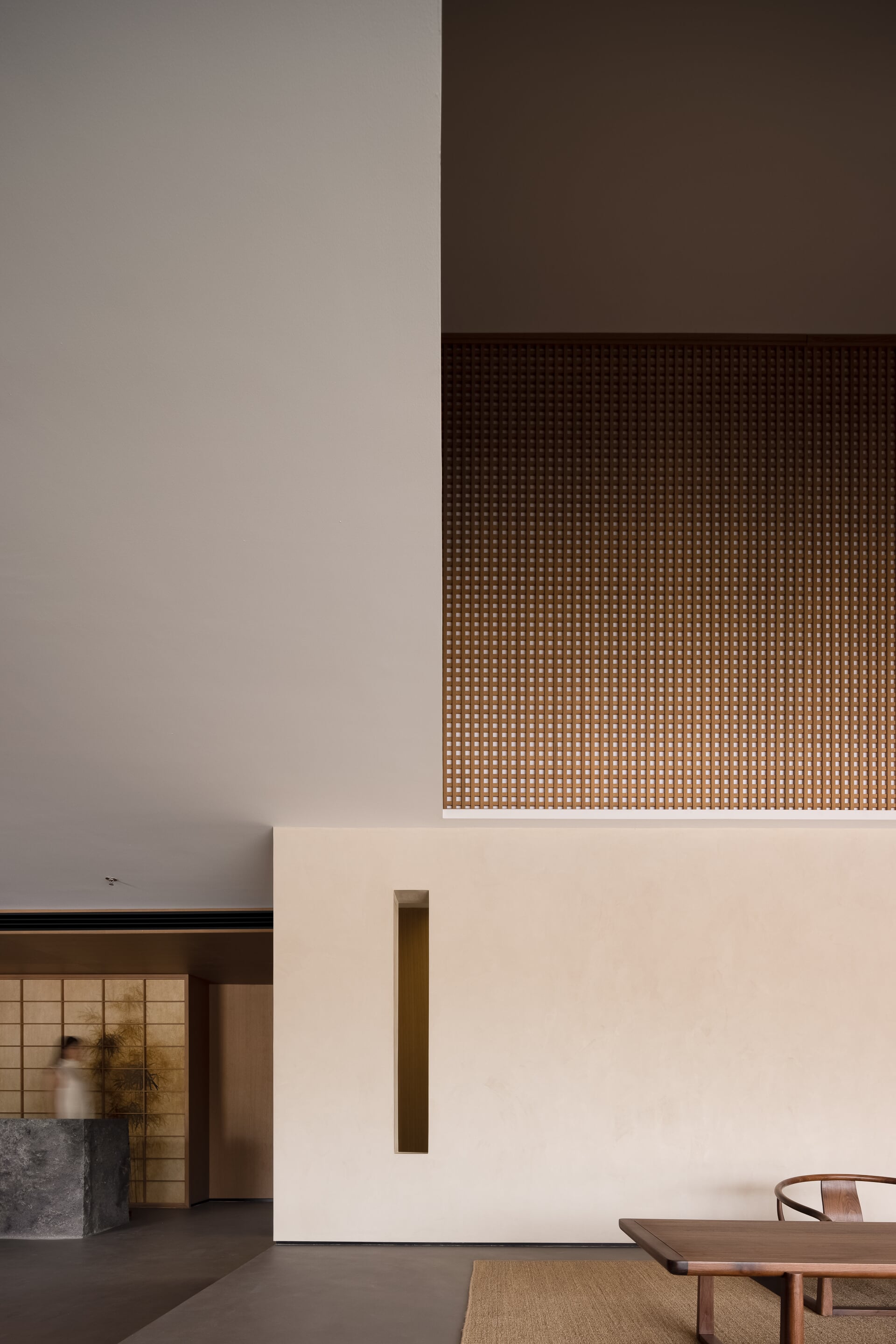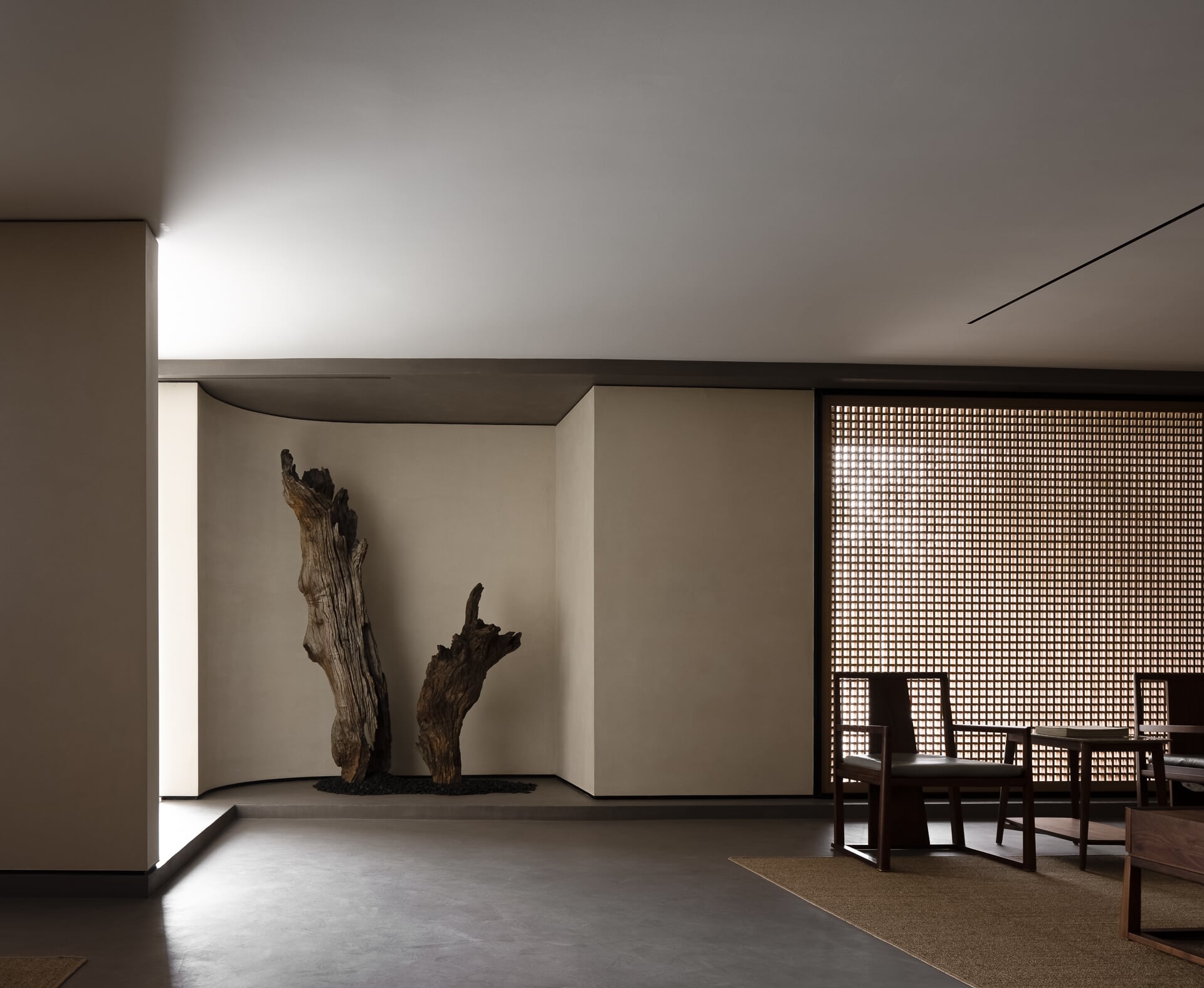 欲退而有余地,有余地则有空间。整体立面的退敛、标识发光效果的褪却、置一椅以隐示空间属性的克制,并非技巧与风格取向的忖度,而皆源自设计师对荟舍品牌精神之理解、体悟与凝塑:欲退而不争,不争而心宁,心宁则静。欲退而静。