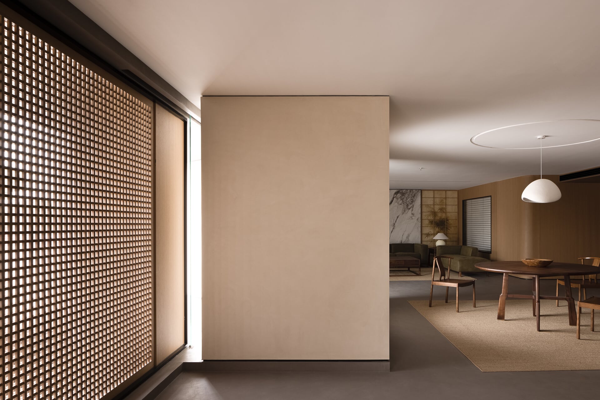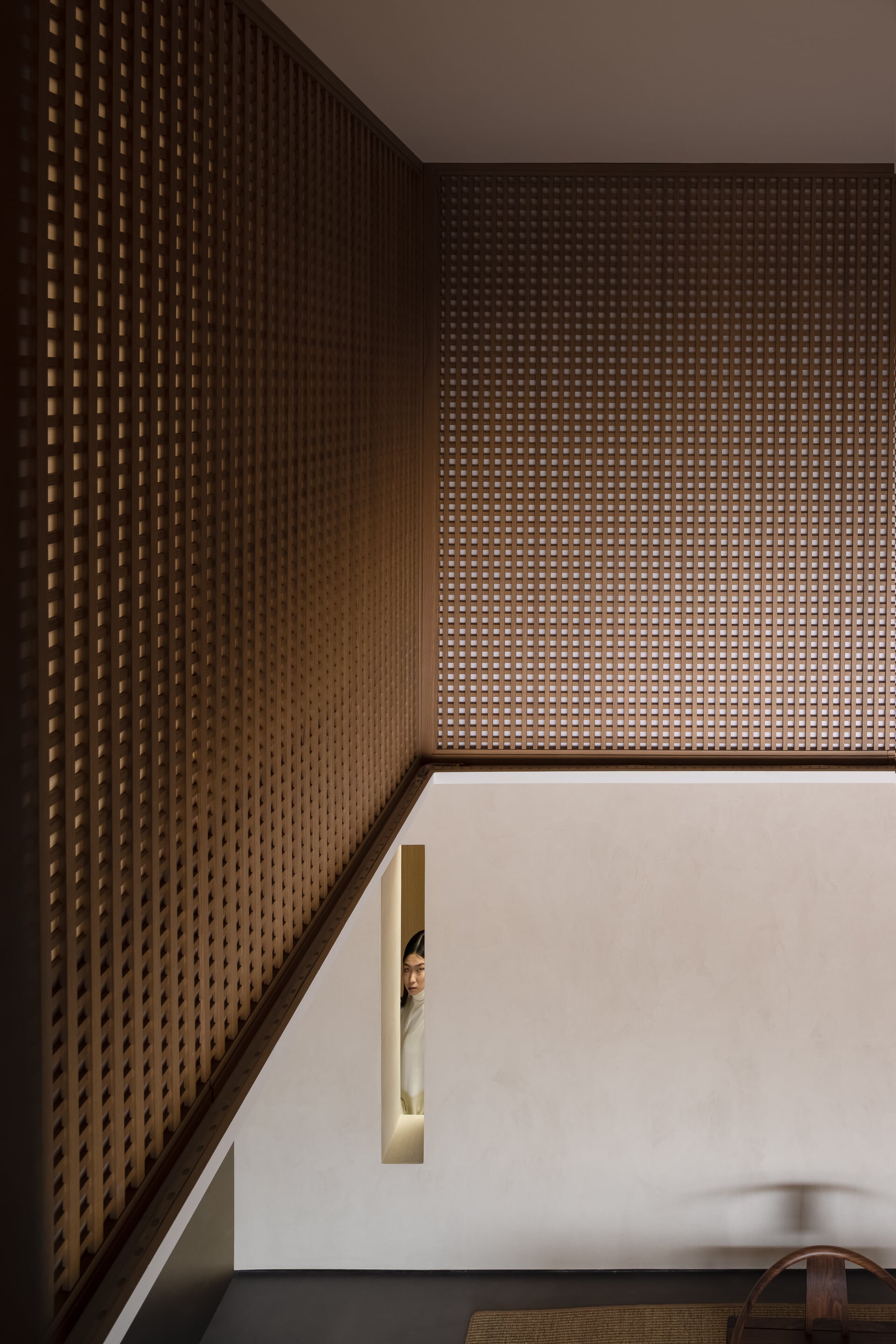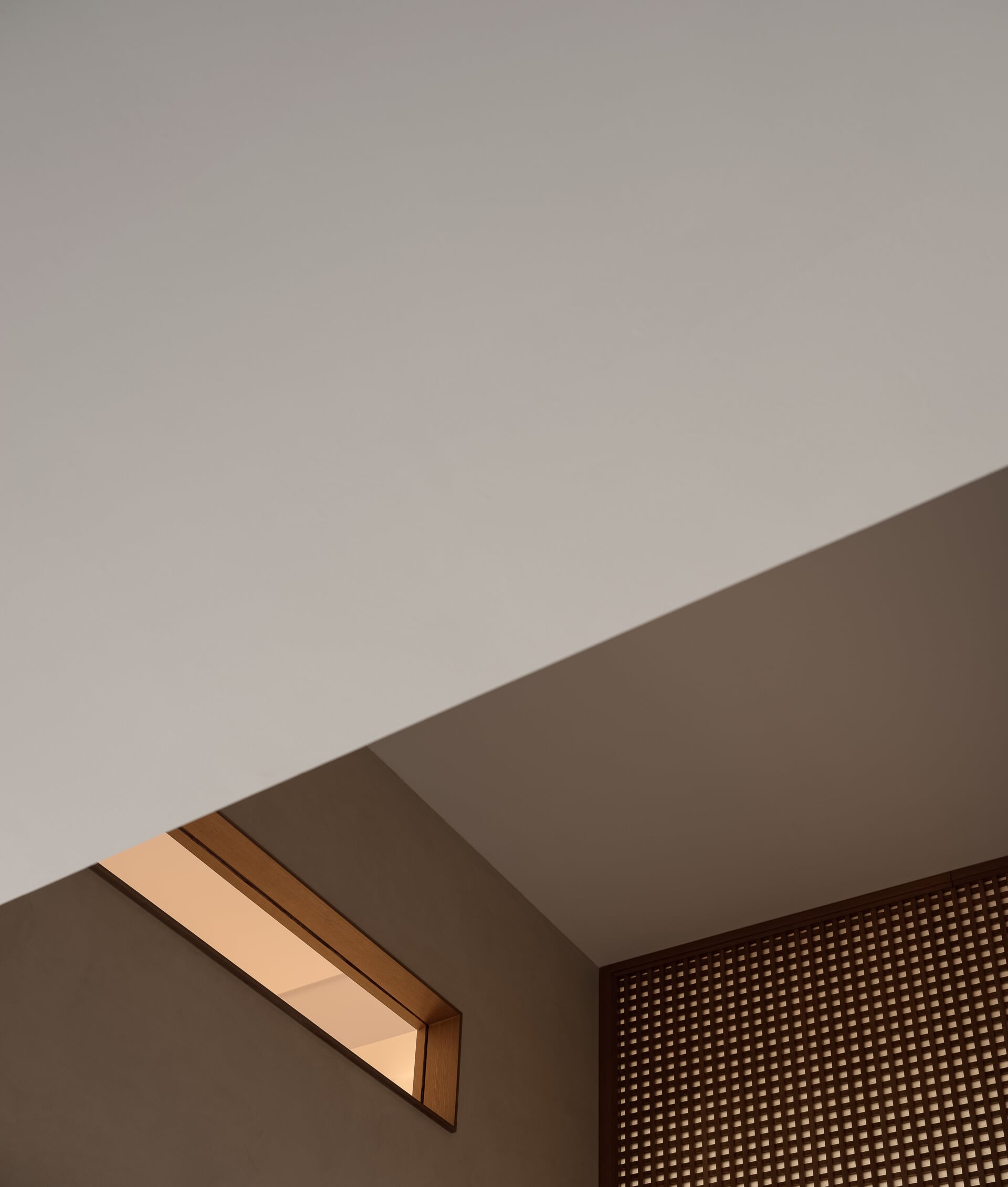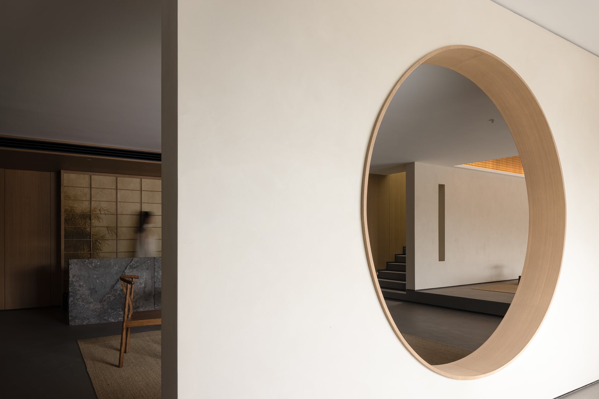 欲退而有余地,有余地则有空间。整体立面的退敛、标识发光效果的褪却、置一椅以隐示空间属性的克制,并非技巧与风格取向的忖度,而皆源自设计师对荟舍品牌精神之理解、体悟与凝塑:欲退而不争,不争而心宁,心宁则静。欲退而静。