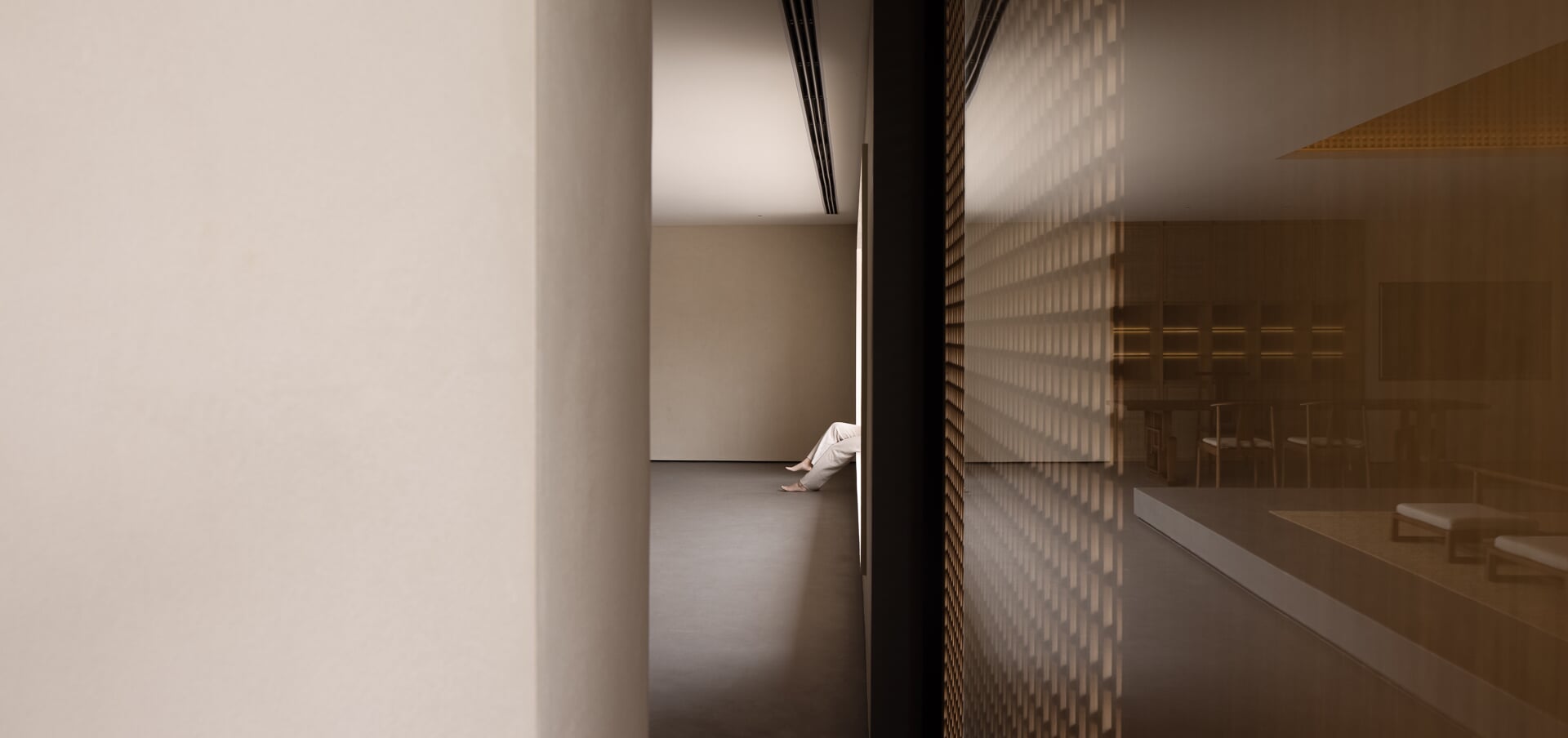 基于LICO 50%DESIGN设计创作理念与“功能美学“审美语境体系,结合荟舍品牌精神意涵,我们确立了“去介质、去符号、去风格,关闭感官通道以重启精神体验“作为本案的设计创作策略,以达荟舍营造“宁静、气定、神怡”之“会舍”品牌人文精神体验场域。