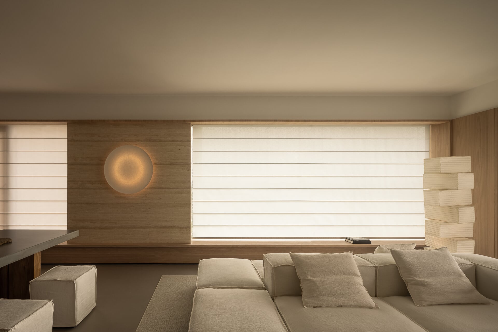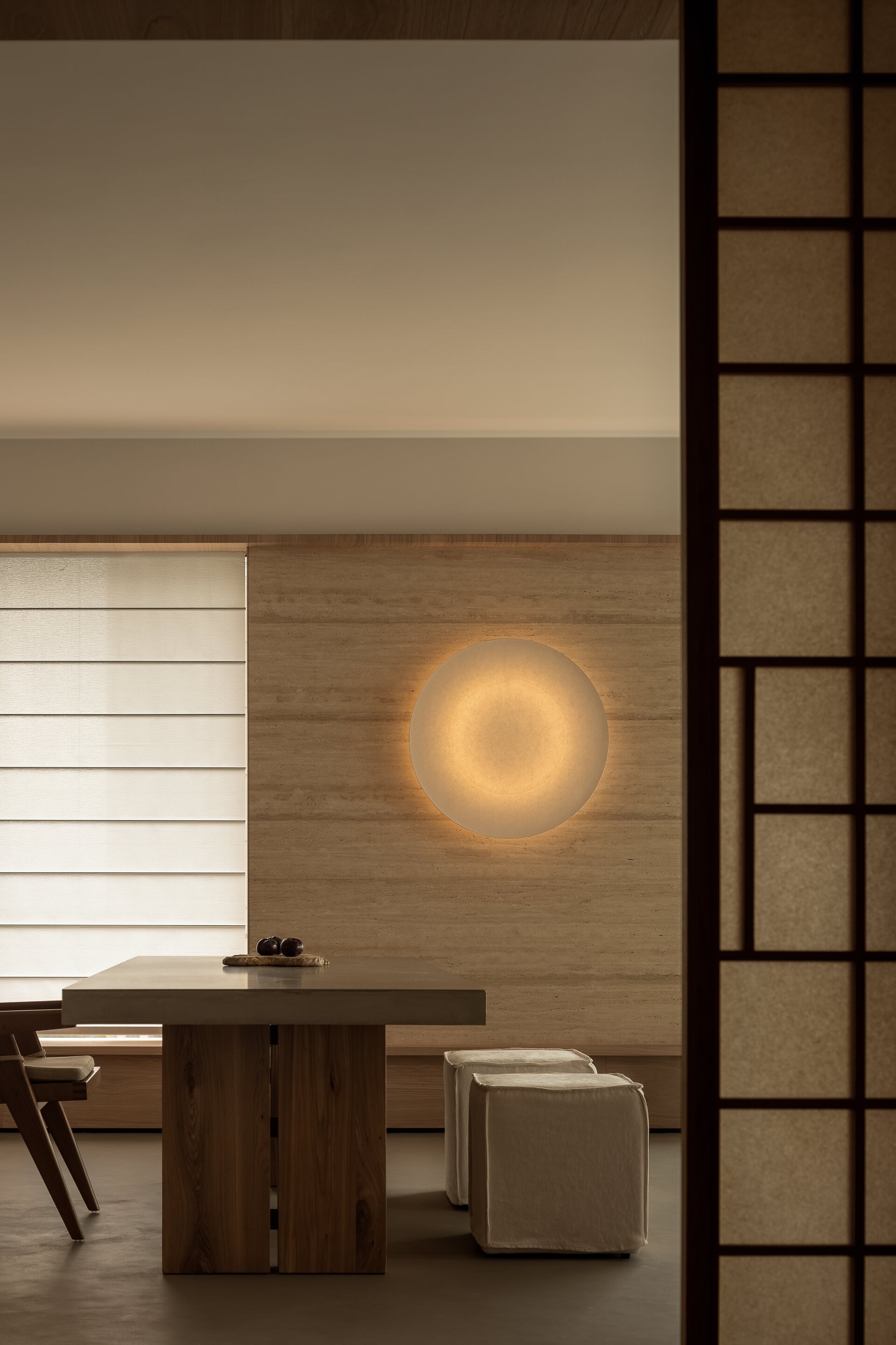 基于主人生活习惯、秉性与LICO“50%DESIGN:功能美学重塑生活日常”的核心设计创作理念,设计师以“东方既白”为本案主题,提出“生于自然 & 与自然生”的设计策略,取用生于自然之材,以木为主,辅以纸帛、棉麻、金石,巧借木纹、石肌、纸质,营造平和、温润、守常的自然生活氛围,呈现一种甘之如饴、安之若素的理想生活态度。